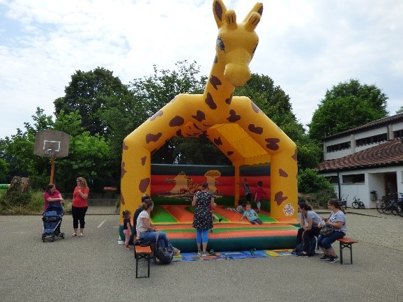 Auf dem Außengelände versuchten sich immer wieder Besucher am Bungee-Run. Auch die zweite große Hüpfburg wurde hier rege genutzt. Als am Nachmittag die Sonne immer mehr wärmte, fand man auch auf dem kleinen Wasserspielplatz mit Kleingeräten, Planschbecken und Wasserbahn begeisterte Kinder.